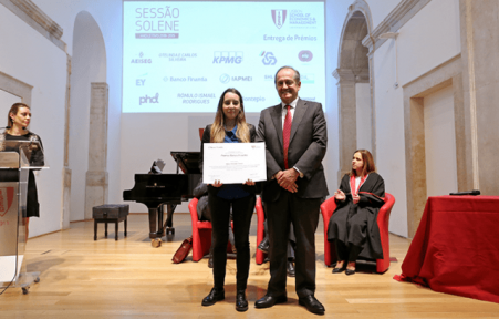 By the time of the Solemn Session of the Academic Year 2018/2019 at the Instituto Superior de Economia e Gestão em Lisboa (ISEG), on February 7th, Dr. António Guerreiro, President of the Strategic Council of Banco Finantia, handed over the prize awarded by the Bank to the Best Student of the Master in International Economics and European Studies, Mara Sousa.