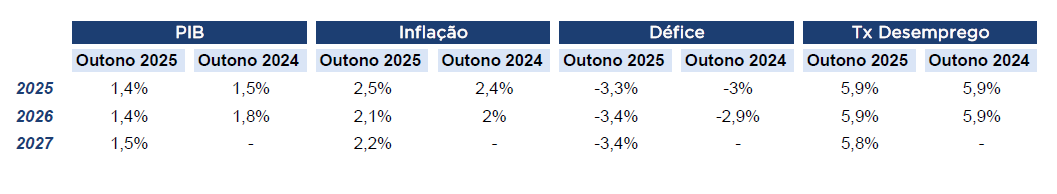 - Projeções EU: https://economy-finance.ec.europa.eu/economic-forecast-and-surveys/economic-forecasts/autumn-2025-economic-forecast-shows-continued-growth-despite-challenging-environment_en#:~:text=Altogether%2C%20this%20forecast%20projects%20real,and%20by%201.4%25%20in%202027 | https://economy-finance.ec.europa.eu/economic-forecast-and-surveys/economic-forecasts/autumn-2024-economic-forecast-gradual-rebound-adverse-environment_en